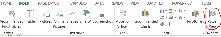 This blog post is to show how the Power View option in Excel 2013 can be utilized for performing analysis of Tweets. Once I had the tweets exported to an Excel file, I used the Power View report option to create a new Power View report. See screenshot below.