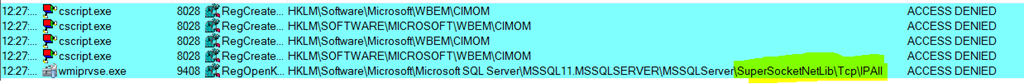 As you can see above, the access denied was on the SQL Server TCP/IP registry key and the WBEM keys. Since the registry key could not be read, the object was not created. And which is why we got the weird error listed above.
